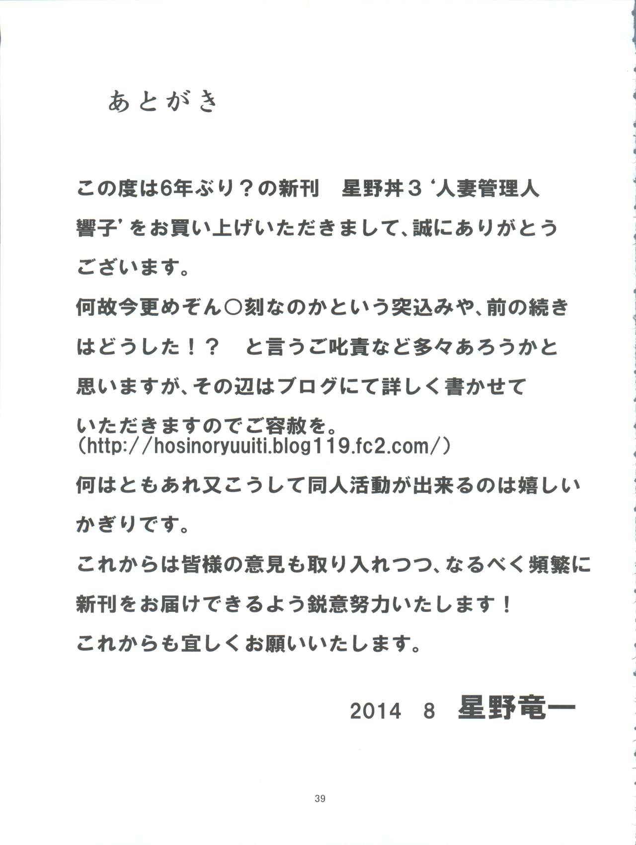 (C86) [Syouryu Yasui-Kai (Hoshino Ryuuichi)] Hitozuma Kanrinin Kyouko (Maison Ikkoku) - (C86) [Syouryu Yasui-Kai (Hoshino Ryuuichi)] Hitozuma Kanrinin Kyouko (Maison Ikkoku)_40